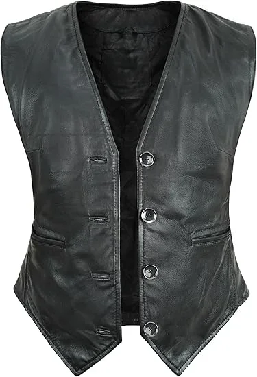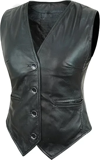 Leather Vest Women Button-Up Waistcoat Real Leather Sleeveless Biker Vest Business Classic