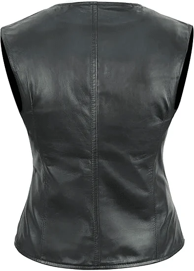 • Real High Quality Leather – This womens motorcycle vest is made from top-grade real lambskin leather that assures a nice, soft touch and a soft sheen that adds a stylish touch despite being cruelty-free.